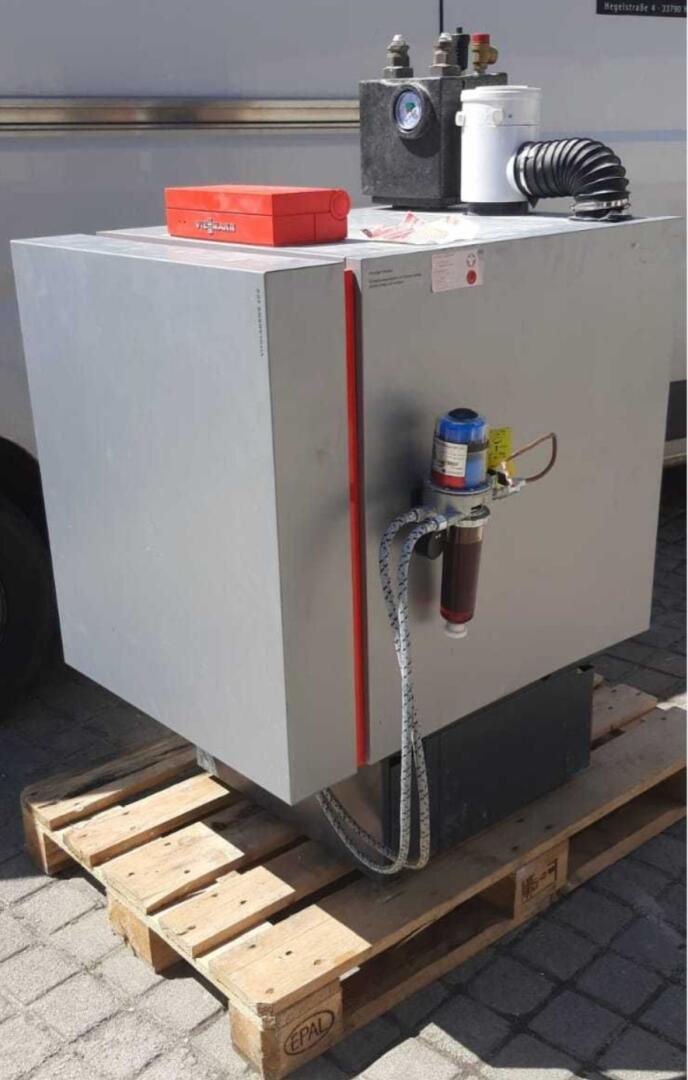 Viessmann Vitoladens 300-C + Vitotronic 200 wraz z oryginalną podstawą i pompą do skroplin. Do tego grupa pompowa Viessmann DIVICON z zaworem trójdrożnym oraz pompą obiegową WILO (rok 2018)