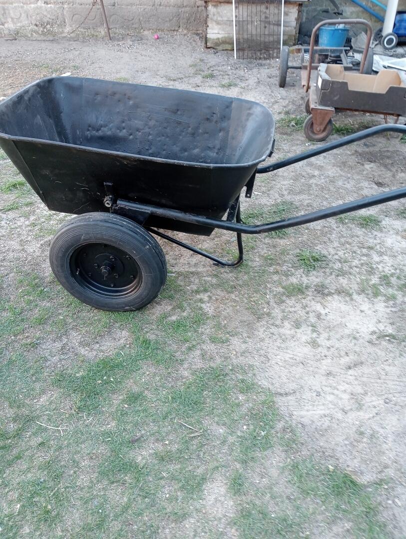 Sprzedam taczke PRL - wywrotka, masywna gruba blacha, oryginalne koła od zgrabiarki skręcane 10-ątki.