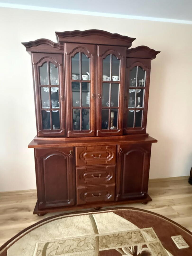 Sprzedam witrynę widoczną na zdjęciu. Wymiary: wysokość 214cm, szerokość 151cm, głębokość 51cm